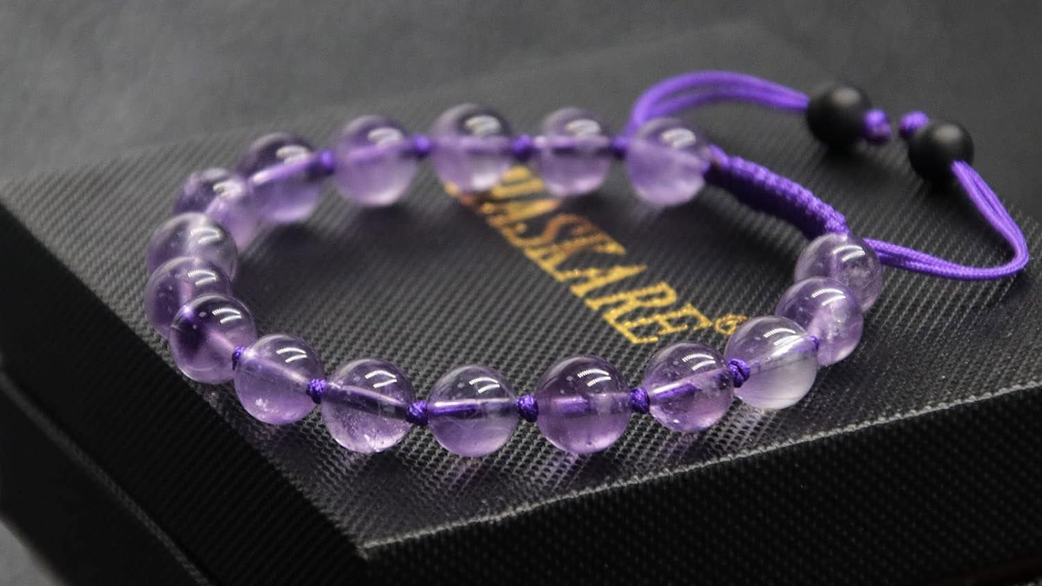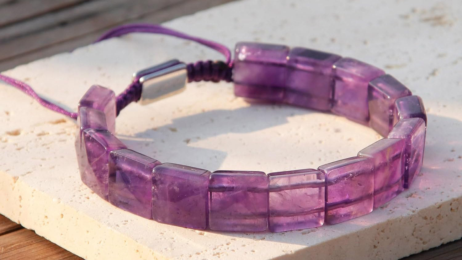 This amethyst bracelet is carefully crafted by hand, ensuring that each piece is unique and made with the utmost attention to detail.