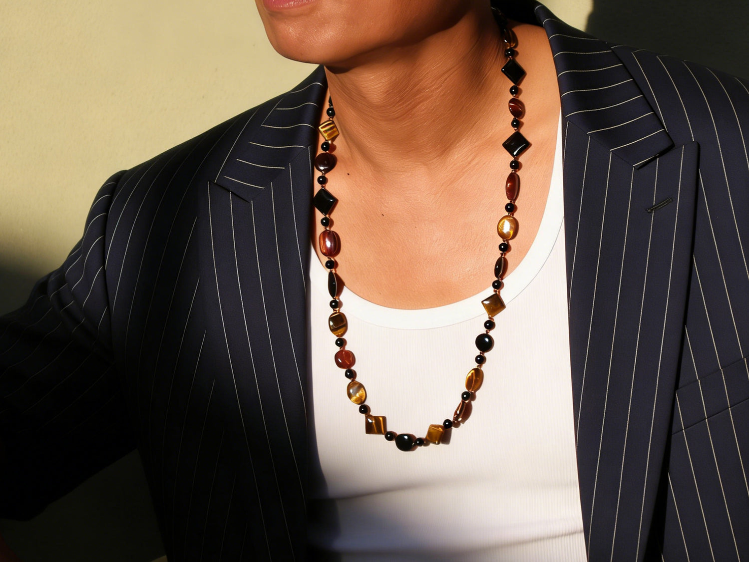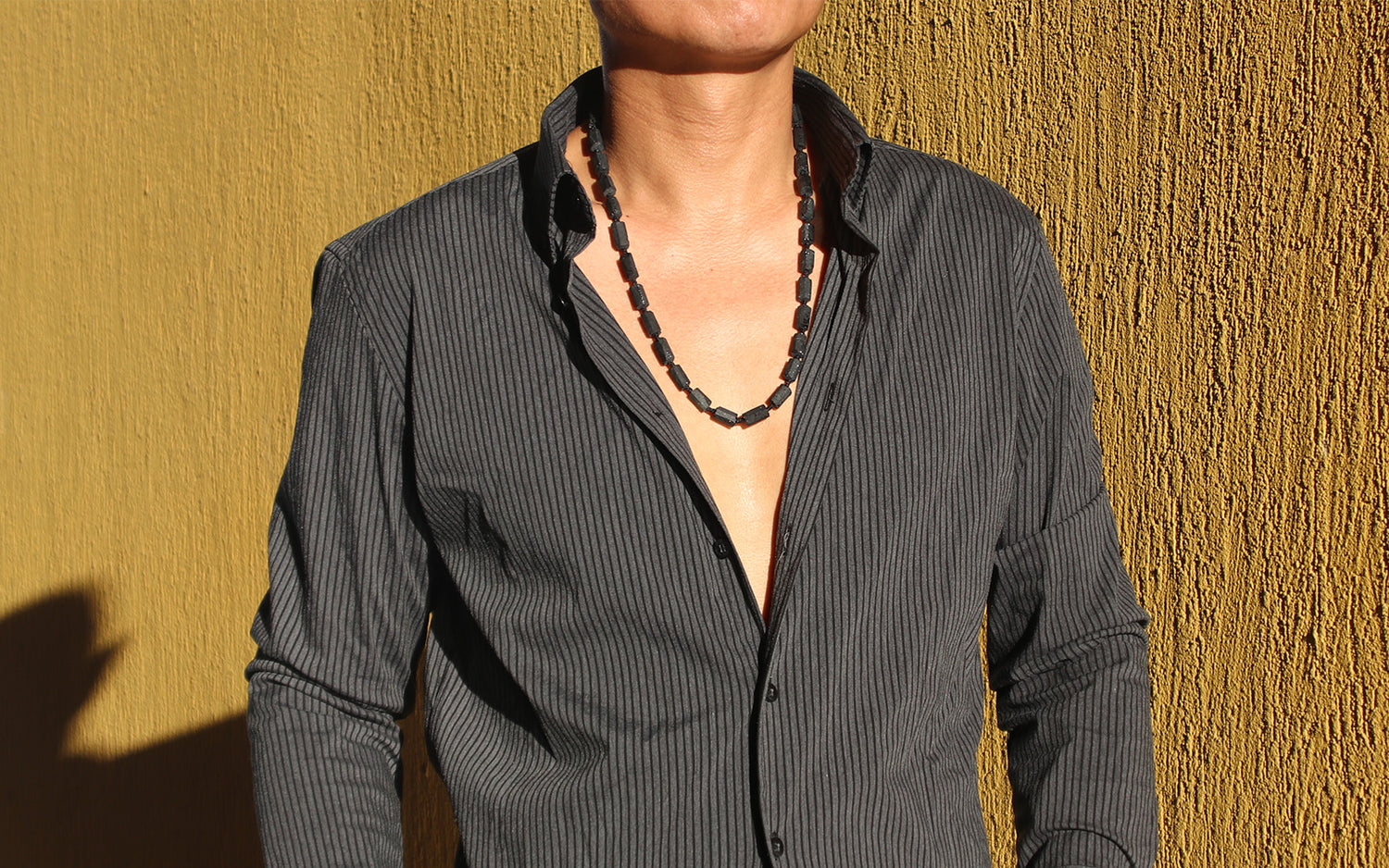 Mens Black Tourmaline Necklace (23.6-24.8 inches)