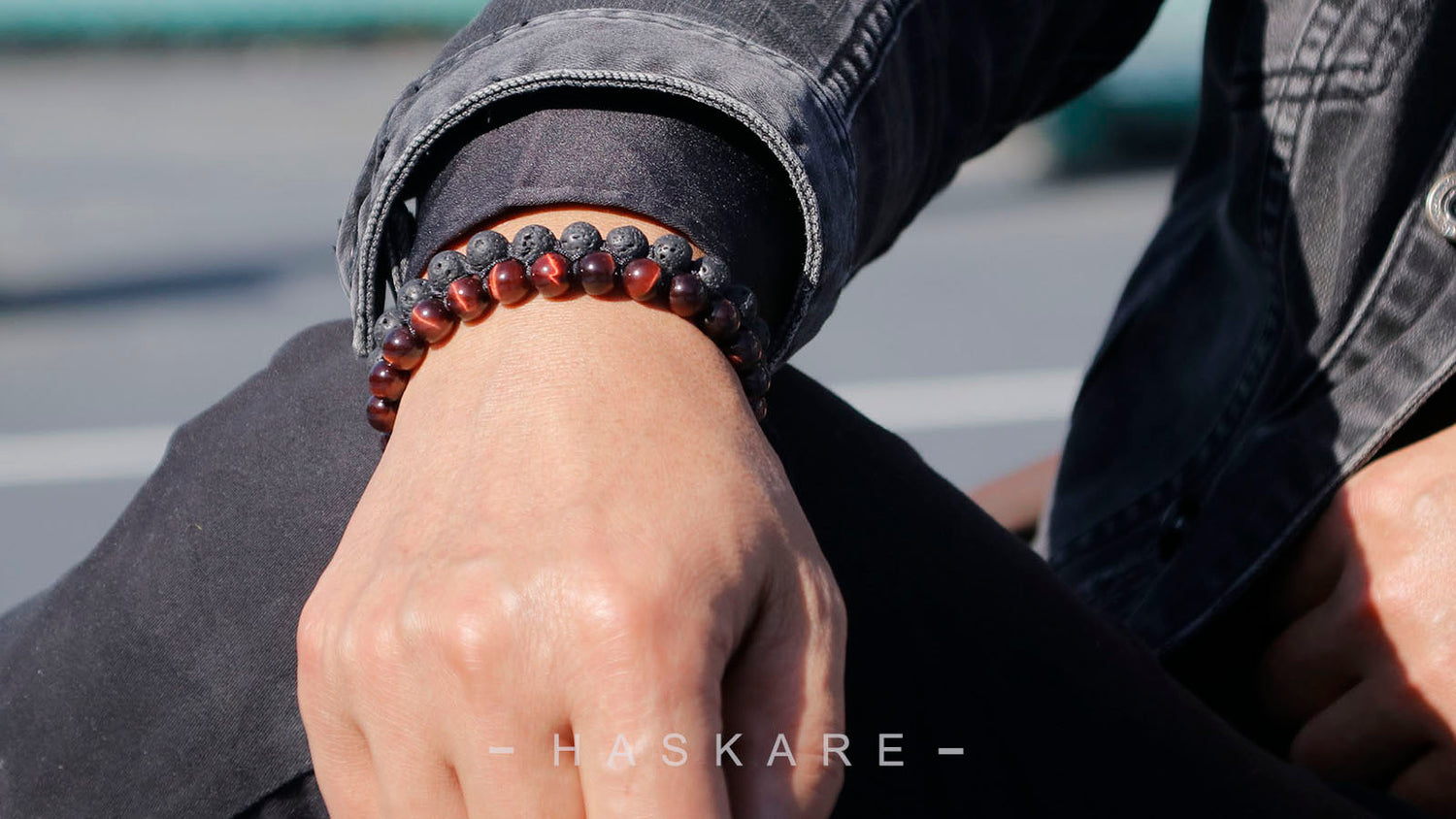 Red Tiger Eye & Lava Beaded Bracelet Stacked (8mm)