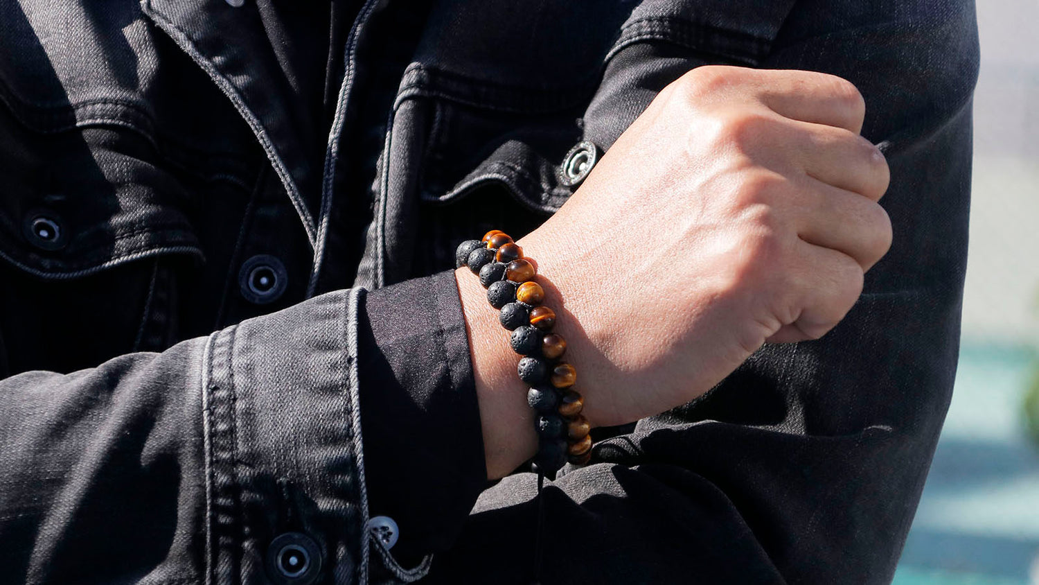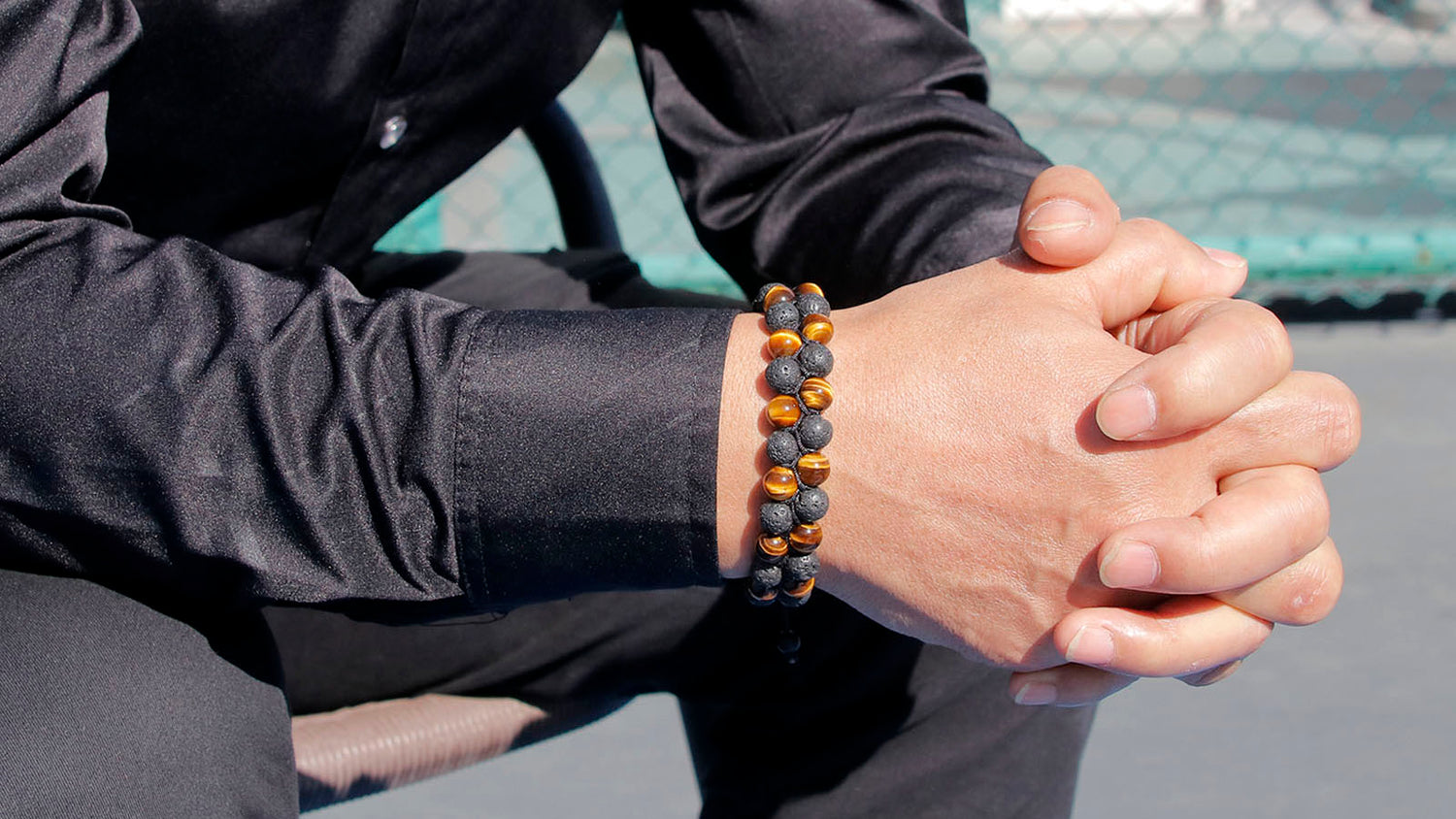Tiger Eye & Lava Beaded Bracelet Stacked (8mm)