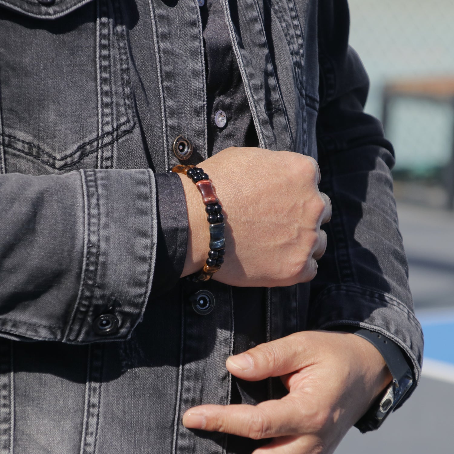Tiger Eye & Onyx Beaded Bracelet Stacked (8mm)