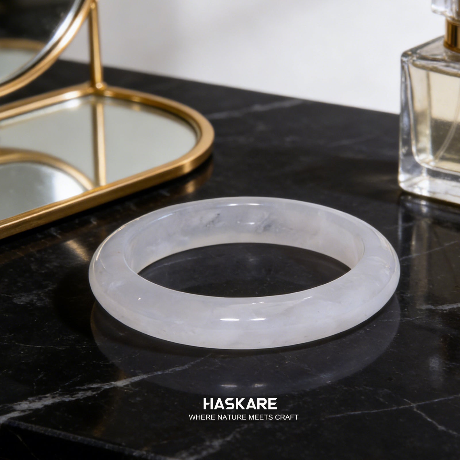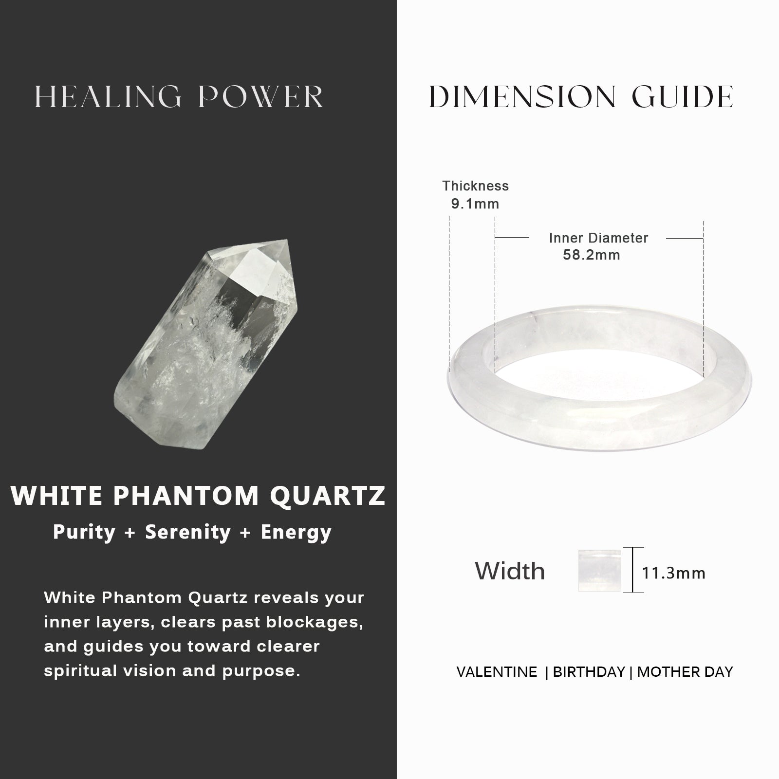 This White Phantom Quartz bangle is a true natural rarity—its delicate, wispy phantom inclusions and soft, luminous transparency are a pattern nature will never replicate. Each subtle cloud and inclusion tells a unique geological story, just as your life journey is one of a kind. Wear it as a quiet, personal reminder of your own inner clarity and growth.