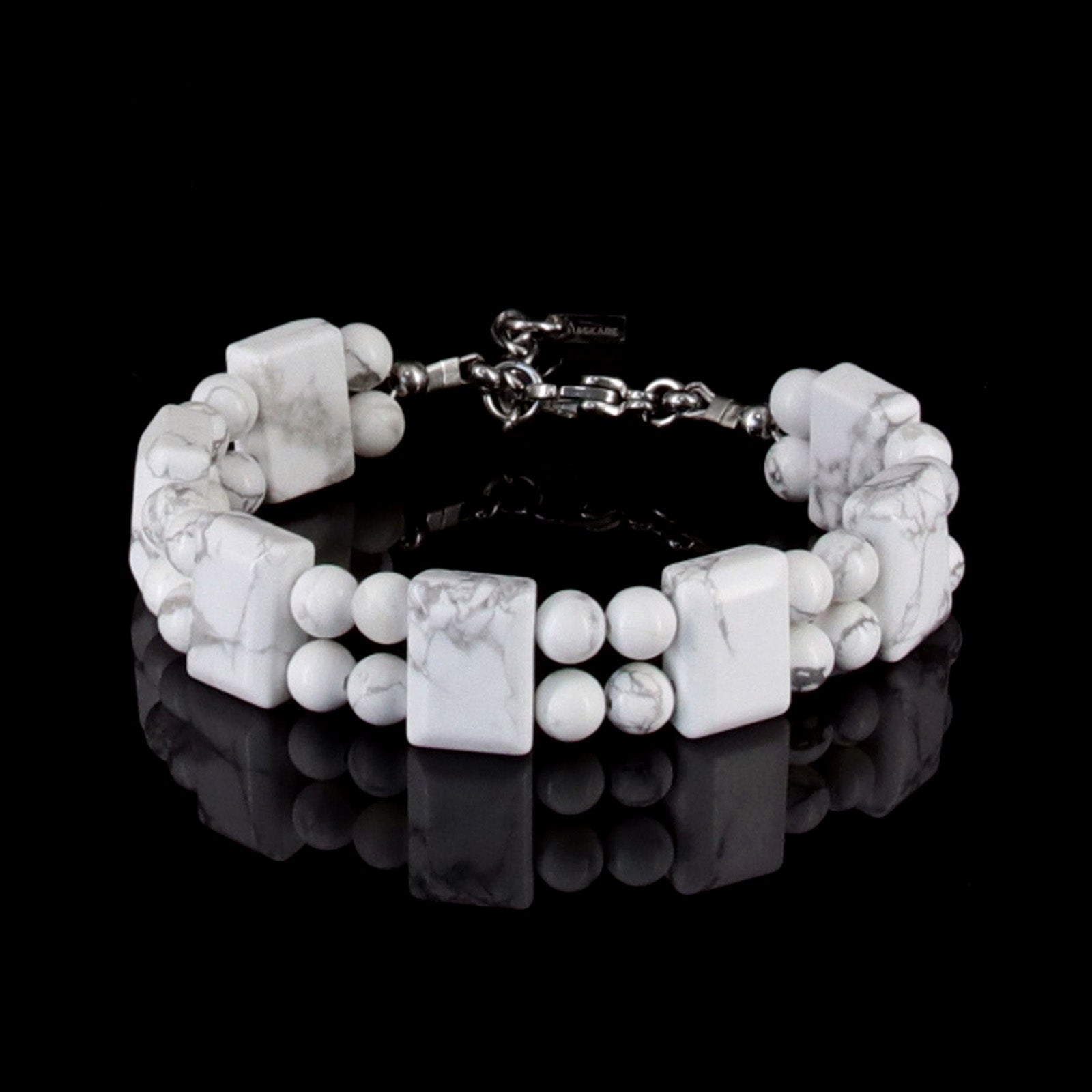 This unique bracelet features ice-cracked white howlite from Zimbabwe, paired with durable stainless steel wire—creating a dialogue between the stone’s textured charm and the wire’s tough practicality. Its design balances rugged appeal with everyday elegance, fitting seamlessly into gym sessions, office days, or casual outings.Each white howlite bead is hand-polished to a warm, smooth finish, and the bracelet uses precision-woven stainless steel wire—far more wear-resistant than ordinary rope or elastic. Skilled craftsmanship ensures it holds up to daily use, from sweating during workouts to regular office wear.Equipped with an adjustable chain closure, it flexibly fits wrist sizes around 18-20cm (7-7.8inch) for a snug, comfortable fit. No awkward slipping or tightness, just easy wear that adapts to your daily movements.This bracelet is ideal for holiday gifts, birthday surprises, or anniversaries—conveying the sentiment that “he deserves to be cherished.” It comes with a cleaning cloth, a branded card, and is packed in a branded gift box with a gift bag, blending ceremony and practicality for sincere gifting.The White Howlite Bracelet embodies HASKARE’s core philosophy: we spare no effort to craft pieces that combine premium materials, solid craftsmanship, and real-life utility. If you’re not completely satisfied with your purchase, feel free to reach out—we’re committed to your positive experience.