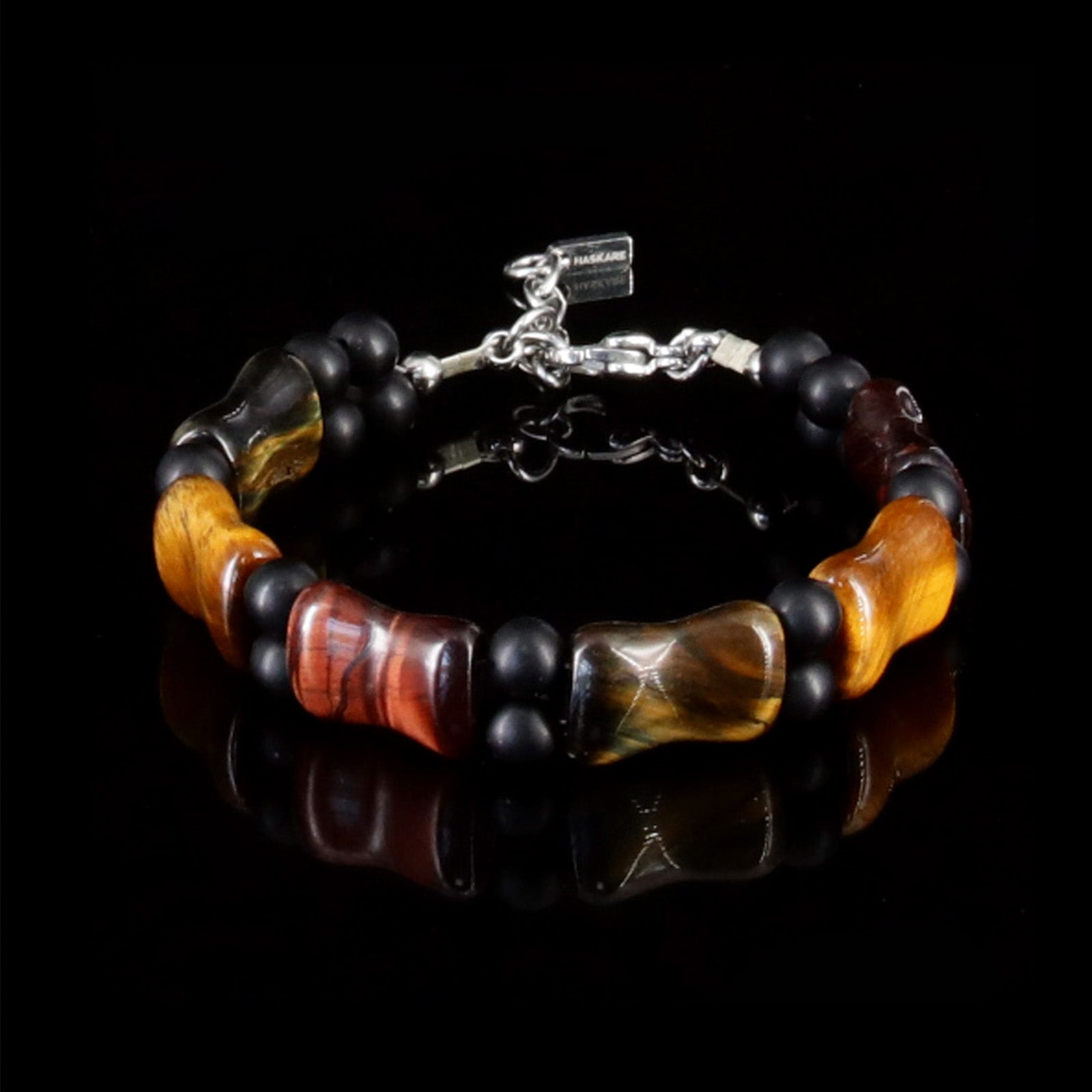 - ✦Design Inspiration & Symbolic Meaning✦ This exquisite men's bracelet is inspired by the “Power of the Earth”, with tiger's eye texture like the pupil of a tiger, symbolizing courage and vitality, and black onyx like the armor of the Xuanwu, guarding balance and resilience.