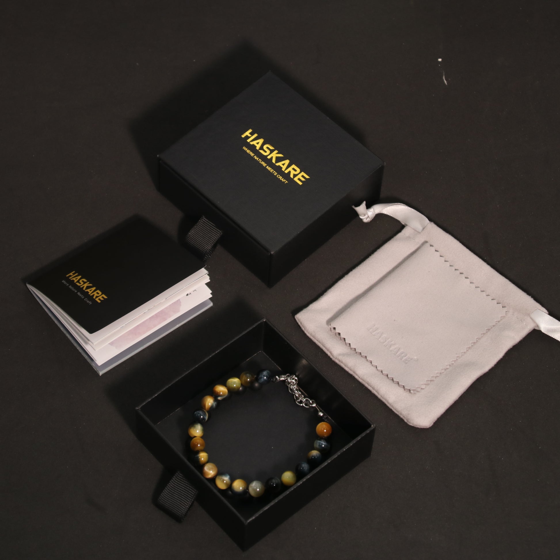 Crafted with care, the bracelet features premium South African tiger’s eye and Brazilian black onyx beads, each hand-polished to a smooth, luxuriously comfortable finish with no rough edges. Strung on a 316L stainless steel cord, it’s waterproof and sweat-resistant, built to endure daily use and intense workouts alike. The adjustable extension chain ensures a perfect fit for most wrists (19–21cm / 7.5–8.2"), adapting to your movement without slipping.