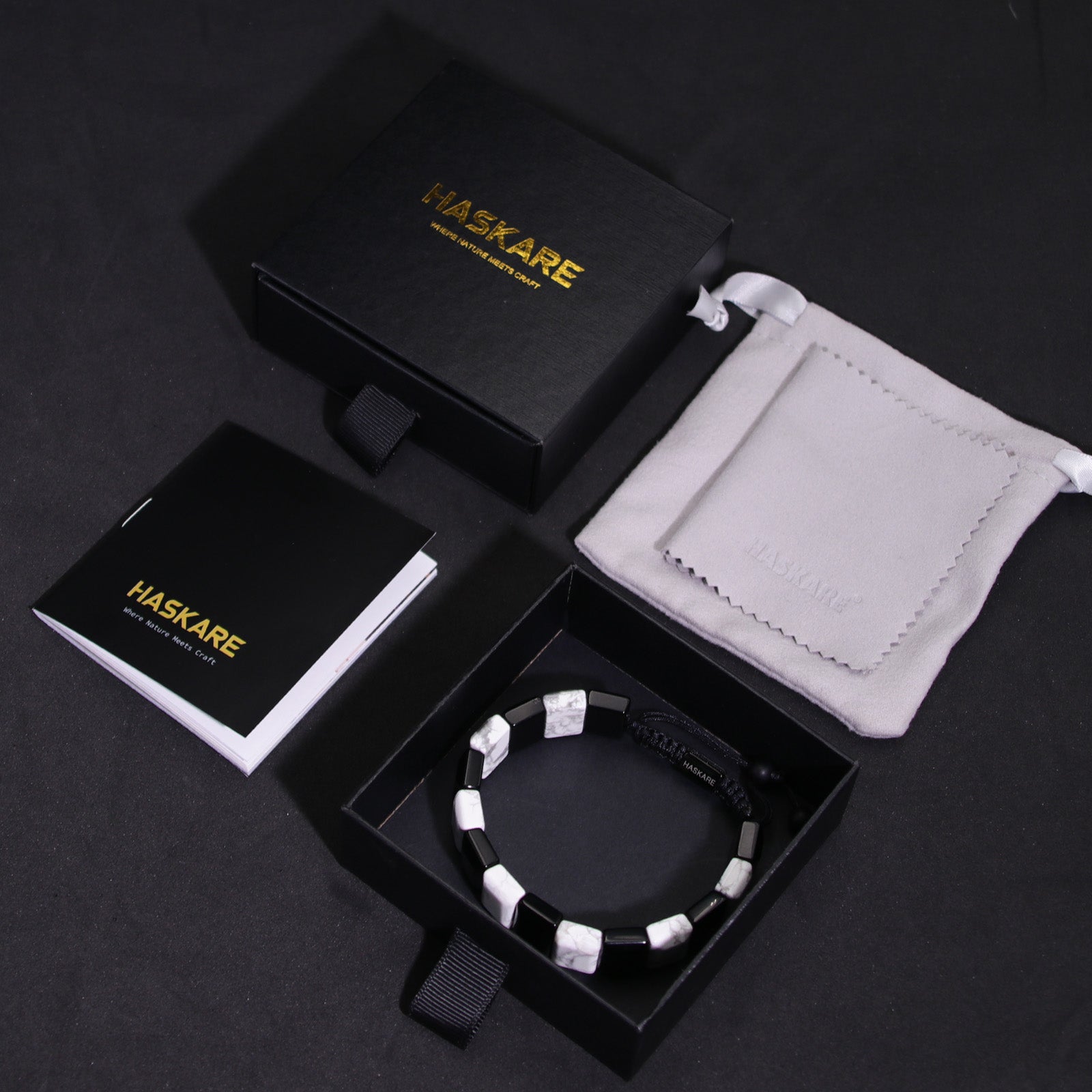The White Howlite & Black Obsidian Bracelet embodies the brand’s core philosophy: timeless men’s accessories thrive on the harmony of natural materials, thoughtful craftsmanship, and everyday utility. We leave no stone unturned for your satisfaction—feel free to reach out if you’re not completely happy with your purchase.