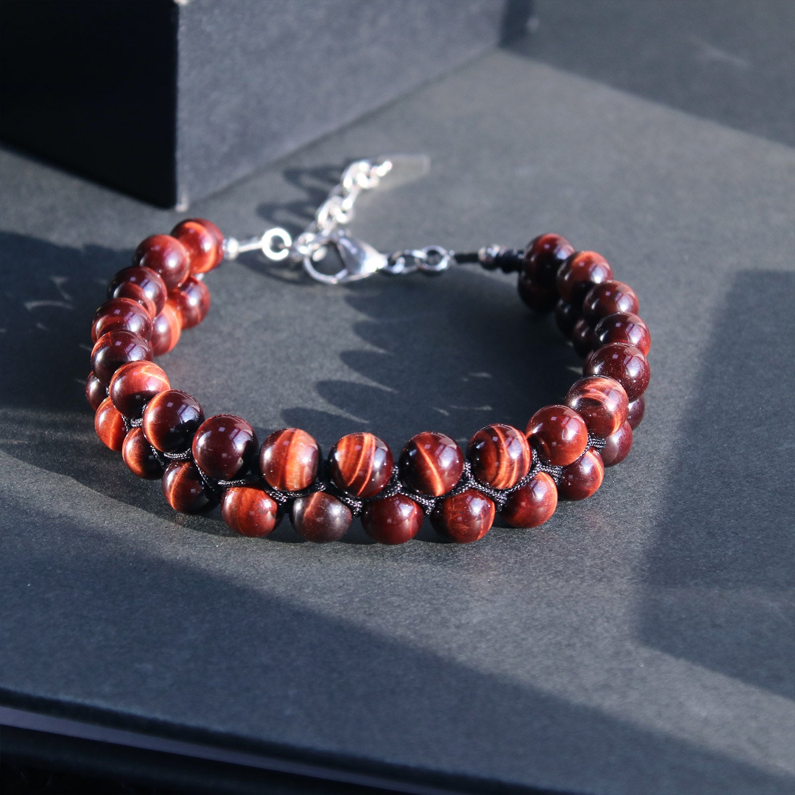 8"Red Tiger Eye Double Row Bracelet (316L Stainless Steel)